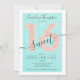 Une parties scintillant d'or rose moderne, chic et élégante douce invitation de fête de 16 ans avec une typographie moderne de 16 avec parties scintillant rose or scintillant sur un turquoise arrière - plan de lumières à cordes bleu et blanc. Ajoutez votre photo à l'arrière ou laissez un fond bleu. Parfait pour le thème princesse Sweet 16!