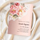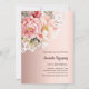 Une élégante invitation à l'anniversaire de 21e (ou tout âge) pour les femmes. Un fond dégradé d'or rose décoré de fleurs d'or rose et rose, de roses et de dentelle. Personnalisez et ajoutez un nom et des détails du parti.