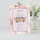 Une belle réponse de mariage avec un fond de fleurs de cerisier roses. Le centre rose pâle est rehaussé de belles roses de la paix jaune rosé et d'accents de couleur violette. Cette carte de réponse correspond à l'invitation du même design.