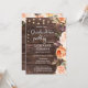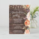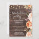 Envoyez à vos invités une belle invitation de fête de fin d'études avec cette carte en bois et guirlandes avec fleurs rose pâle et pêche.