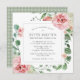 Une très jolie invitation carré pour une fête de 80ème anniversaire. La forme moderne du carré est ornée d'un cadre botanique décoré de roses roses et d'hydrangées blanches. De belles branches feuilles et roses d'eucalyptus vertes créent une atmosphère ouverte et aérée. Invitation retour est rustique vert et blanc chèque motif plaid. Tout le texte est modifiable. Des articles de papeterie de coordination et des fournitures de fête sont disponibles.