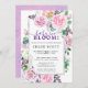 Roses et pivoines violettes et roses avec lilas violet et blanc créent un cadre luxuriant sur cette invitation baby shower Baby in Bloom. Le dos est une aquarelle rose et violet unique avec juste la pointe des contours roses. Tout le texte peut être facilement édité pour créer un souvenir personnel.