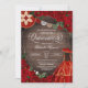 Quinceañera invitation en roses rouge rubis avec des accents or et bannière de lapin picado papel, casquette charro, et belle robe de robe de bal princesse. Consultez la boutique pour cette invitation avec des filles dans différentes couleurs de cheveux et de teintes de peau.