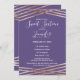 Des rayures doublées modernes, simples et élégantes en or rose imitation imprimé sur violet violet, Sweet 16 anniversaire invitations fêtes de fête. Ce design classique et sophistiqué est parfait pour une fille d'anniversaire classe, tendance et élégante. Personnalisez avec votre propre message sur l'avant et un monogramme customisé sur l'arrière. Toute la conception d'impression photo.