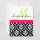 Joli logo mariage monogramme avec des noms verts monogramme initial et noir dans une police élégante, une bande ou bande rose chaud ajouter à ce joli motif floral noir et blanc damassé pour créer un faire-part de mariage unique sur lequel vos invités vous complèteront. Ce design est simple mais élégant et parce qu'il utilise votre monogramme initial, il sera d'une sorte. Conception de la disposition des faire-part de mariage par Elke Clarke©2010. Carte graphique sous licence. Customisez avec vos informations et couleurs mariages. Besoin d'aide pour créer un paquet mariage avec des éléments correspondants tels que les cartes de boîtier de réception RSVP anne, veuillez contacter luxuryweddinginvitations@gmail.com