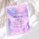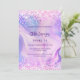Une douce fille et féminine 16 invitation. Devant : Un arrière - plan de couleur holographique en violet, rose. Décoré de confettis rose vif. Personnalisez et ajoutez un nom et des détails du parti. Le nom est écrit avec un script de style écrit à la main, des lettres de couleur violette.