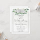 Invitation élégante pour le 25e anniversaire de mariage avec une illustration aquarelle de feuilles d'eucalyptus ensemencées, de roses blanches et de petites fleurs de baby breath.