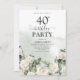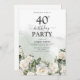Invitation Roses blanches élégantes et verdure 40e anniversai