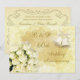 Bouquet de roses blanches et clochettes sur fond doré clair en dentelle Invitation 60e anniversaire de mariage.