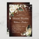 Invitation Roses blanches Lanterne en bois rustique Mariage a