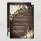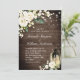 Invitation Roses blanches Mariage d'aquarelle en bois rustiqu