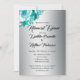 Une invitation à la répétition mariage à la fois moderne et contemporaine, mais toujours classique et élégante, argentée et aqua. Le décor est composé d'un beau bouquet de rose aqua (avec une pointe de rose) en haut à gauche, avec un dégradé métallique en dessous. L'arrière de la carte présente la même base argentée avec une version plus grande du bouquet d'aqua rose au centre.