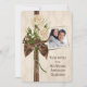 Bouquet de roses ivoire avec perles sur fond de damas et photo personnalisée pour le couple honoré.