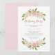 Ces invitations à fêtes d'anniversaire chic et tendance présentent de beaux roses d'aquarelle rose vif dans des sprays avec beaucoup de feuilles verts. Il y a du faux or, un script tendance, et le fond de l'invitation est une couleur rose correspondante.