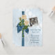 Bouquet perle et rose sur ruban bleu avec arc sur élégant arrière - plan damassé bleu. Photo encadrée pour le couple qui renouvellera ses voeux de mariage.