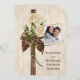 Bouquet de roses ivoire avec perles sur fond de damas et photo personnalisée pour le couple honoré.