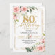 Le rose saumon, l'or, les fleurs comme les roses, le rose poudré et la verdure d'eucalyptus se réunissent pour créer un thème de jardin bohème romantique. Associer ces éléments à une élégante écriture tendance en lettrage script dans un style aquarelle donne un design d'invitation pour un 80e anniversaire époustouflant. La combinaison de teintes pastel douces et de verdure naturelle évoque un charme fantaisiste et une sophistication parfaite pour une invitation pour un 80e anniversaire romantique et mémorable.