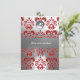 INVITATION ROUGE ET BLANC DAMAS GEMME INITIALES