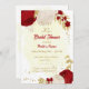 Fleurs romantiques rouges et blanches avec or feuille botanique nuptiale invitation Les détails de la parties scintillant sont simulés. Il est adapté à la fois pour les invitations à la douche nuptiale et à la douche bébé.
