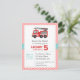 Obtenez des enfants les invités mis le feu pour la partie avec cette invitation rouge de fête d'anniversaire de camion de pompiers ! L'invitation vient avec un camion de pompiers rouge qui a les rayures blanches sur son côté et une échelle escamotable avec le tuyau. Un rouge incliné barre le motif pour l'arrière - plan. Une palette de couleur de rouge, de blanc, bleu et gris. Personnalisez facilement avec vos détails de partie.