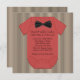 Adorable beige brun et noir pinstripe, arc cravate bébé garçon invitation douche. Un mignon chemise rouge avec cravate arc sur un bronzage et noir à rayures arrière - plan petit homme bébé garçon invitation est facile à customiser pour votre événement. Ajoutez vos détails à l'avant et/ou à l'arrière en ajoutant les détails de l'événement, le style de police, la taille et la couleur de la police et le libellé. Veuillez noter que tous les modèles d'invitation que vous trouverez sur Zazzle sont des graphiques imprimés sans bijoux, arcs, surélevés, gaufrés, ou des pièces ou pièces ajoutées.