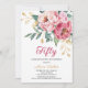 Élégante et élégante invitation à l'anniversaire floral présente une étonnante aquarelle rouge et rose fleur de pivoine avec une verdure dorée. Vous pouvez facilement customiser les détails de la fête, y compris l'âge pour le rendre encore plus personnalisé. Partagez la joie avec vos amis et votre famille et faites de ce jalon anniversaire un souvenir!