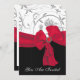 Invitation élégante de dîner de répétition de mariage, faite dans des flourishes floraux de ton noir, blanc, et argenté. Des graphiques rouge d'un ruban et d'un arc colorés beau par rouge, à travers le milieu est décorés d'une gemme rouge dans un cadre argenté de ton. Vous êtes invités, en texte blanc de manuscrit, sur l'avant de l'invitation, et tout le texte, sur le postérieur, est entièrement personnalisable pour adapter à vos besoins d'événement. Belle invitation que les couples priseront, avec tous leurs souvenirs de mariage.