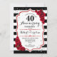 Invitation Rouge Rubis 40e Anniversaire - Rayures Noires et B