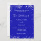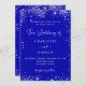 Un arrière - plan bleu royal, décoré de parties scintillant faux argenté, brille. Personnalisez et ajoutez vos noms et détails. Retour : Un code qr. Ajoutez l'URL de votre site Web mariage pour les détails du mariage et RSVP.