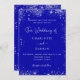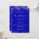 Un arrière - plan bleu royal, décoré de parties scintillant faux argenté, brille. Personnalisez et ajoutez vos noms et détails. Retour : Un code qr. Ajoutez l'URL de votre site Web mariage pour les détails du mariage et RSVP.