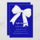 Arrière - plan de couleur bleu roi, décoré d'un grand arc blanc. Personnalisez et ajoutez un nom et des détails du parti.