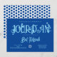 Cette invitation à la bat mitzvah en bleu botanique est encore plus attrayante avec des pois amusants sur le dos. La belle typographie bleu clair a des fleurs sauvages que vous pouvez bouger et redimensionner avec votre lettrage pour rendre cela encore plus unique beauté! Les illustrations botaniques peuvent être modifiées en couleur avec votre texte. Modifiez facilement la couleur arrière - plan sur cette invitation simple et moderne de bat mitzvah bleu pour créer une autre palette de couleurs. Ce modèle est facilement customisé pour n'importe quel thème d'anniversaire bleu roi ou bleu marine ou pour mariage bleu moderne stationnaire.