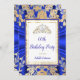 Invitation ROYAL Blue Gold Damask gris Tiara fête d'anniversa