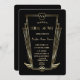 Invitation d'Fête des mariées Royal Gold Art Déco Monogram. Unique Glam, design de carte Vintage avec une fausse forme art déco d'or avec une crête pour vos initiales, faux or Fleur-de-lis comme un héritage royal, un Grand Gatsby des années 1920, vieux style hollywoodien, polices somptueuses sur un arrière - plan noir. Utilisez l'outil Personnaliser pour ajouter vos informations. Pour plus d'informations, visitez s'il vous plaît ma Collection de Mariages Monogrammes Royal Gold Art Déco.