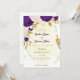 Fleurs royales romantiques violettes et blanches avec faire-part de mariage botanique feuille d'or Les détails de la parties scintillant sont simulés. Il convient aussi bien aux mariages qu'aux parties d'engagement.
