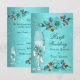 Invitation RSVP Mariage Bleu Sarcelle Roses Fleurs Champagne