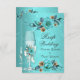 Invitation RSVP Mariage Fleurs Roses Champagne Bleu sarcelle