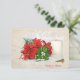 Bouquet de poinsettia et anneaux de mariage avec bougie et Sainte Bible dans un cadre masque élégant pour RSVP mariage de vacances.