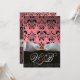 INVITATION RUBAN BLANC ROSE  DAMAS NOIR MONOGRAMME