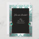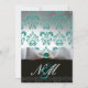 INVITATION RUBAN BLANC TURQUOISE BLEU MONOGRAMME EN DAMAS NOI
