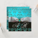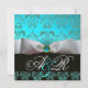 INVITATION RUBAN BLANC TURQUOISE NOIR  DAMAS MONOGRAMME