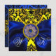 INVITATION RUBAN BLEU OR JAUNE NOIR DAMAS MONOGRAMME
