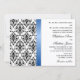 © 2013 Socialite Designs. Notre invitation mariage damassé en noir et blanc a un faux ruban de satin bleu royal. Tous les éléments de conception et le texte sont personnalisables. Si vous avez besoin d'autres produits mariages correspondants comme enregistrer la date ou vous remercier cartes photos, n'hésitez pas à contacter Socialite Designs. VEUILLEZ NOTER QUE L'IMAGE RIBBON EST IMPRIMÉE SUR L'INVITATION.