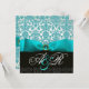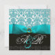 INVITATION RUBAN BLEU TURQUOISE BLANC NOIR DAMAS MONOGRAMME
