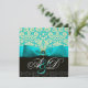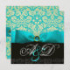 INVITATION RUBAN BLEU TURQUOISE BLANC NOIR DAMASSÉ MONOGRAMME