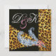 INVITATION RUBAN DE FOURRURE DE LÉOPARD ET INITIALES À PLUMES