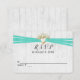Ruban turquoise dans un cœur doré sur bois blanchi.