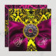 INVITATION RUBAN FUCHSIA OR JAUNE NOIR DAMAS MONOGRAMME
