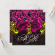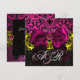 INVITATION RUBAN FUCHSIA OR ROSE NOIR DAMAS MONOGRAMME