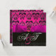INVITATION RUBAN FUCHSIA ROSE VIOLET NOIR DAMASSÉ MONOGRAMME